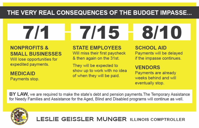 But nearly all other payments will stop on July 1. There will be very real consequences for taxpayers and organizations across Illinois – and sadly, it will most hurt those who can least afford it: