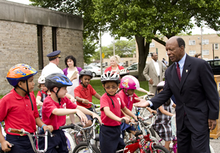 Illinois Secretary of State Jesse White is encouraging children and adults at a far north side school to practice safe bike riding and to always wear a helmet as May marks Bike Safety Month.