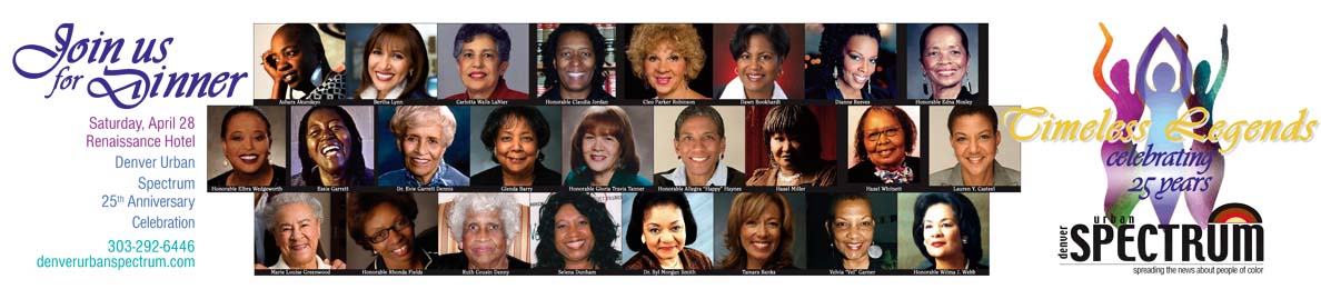 Since 1987, the Denver Urban Spectrum newspaper has been spreading the news about people of color. The Denver Urban Spectrum’s 25th anniversary is a celebration of community, youth, progress, entrepreneurship and leadership. With a distribution of over 25,000, the Denver Urban Spectrum is the most sought-after community publication in the Denver metro area. For more information, visit www.denverurbanspectrum.com or call 303-292-6446.